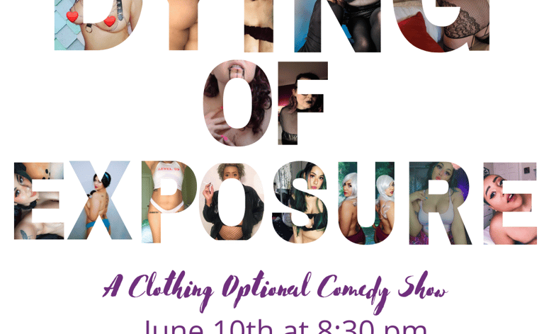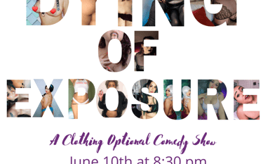 Dying of Exposure is a clothing-optional comedy show held live at Oasis Aqua Lounge, or virtually through Zoom. Our comedians and audience can bare all and entertain you with stand-up, storytelling, and musical comedy spoofs. Follow our Facebook page for updates on future shows!